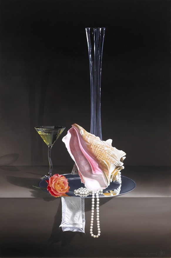 Zeeschelp met Parelcollier en Oranje Roos.