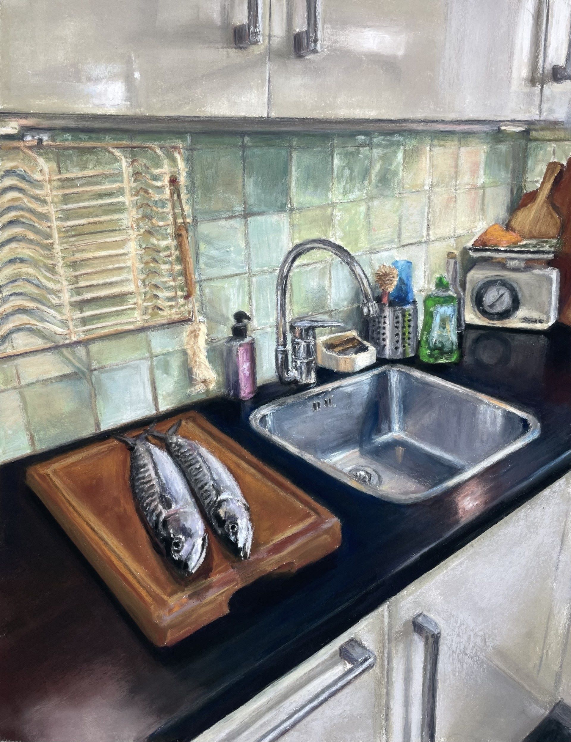Makreel op het aanrecht