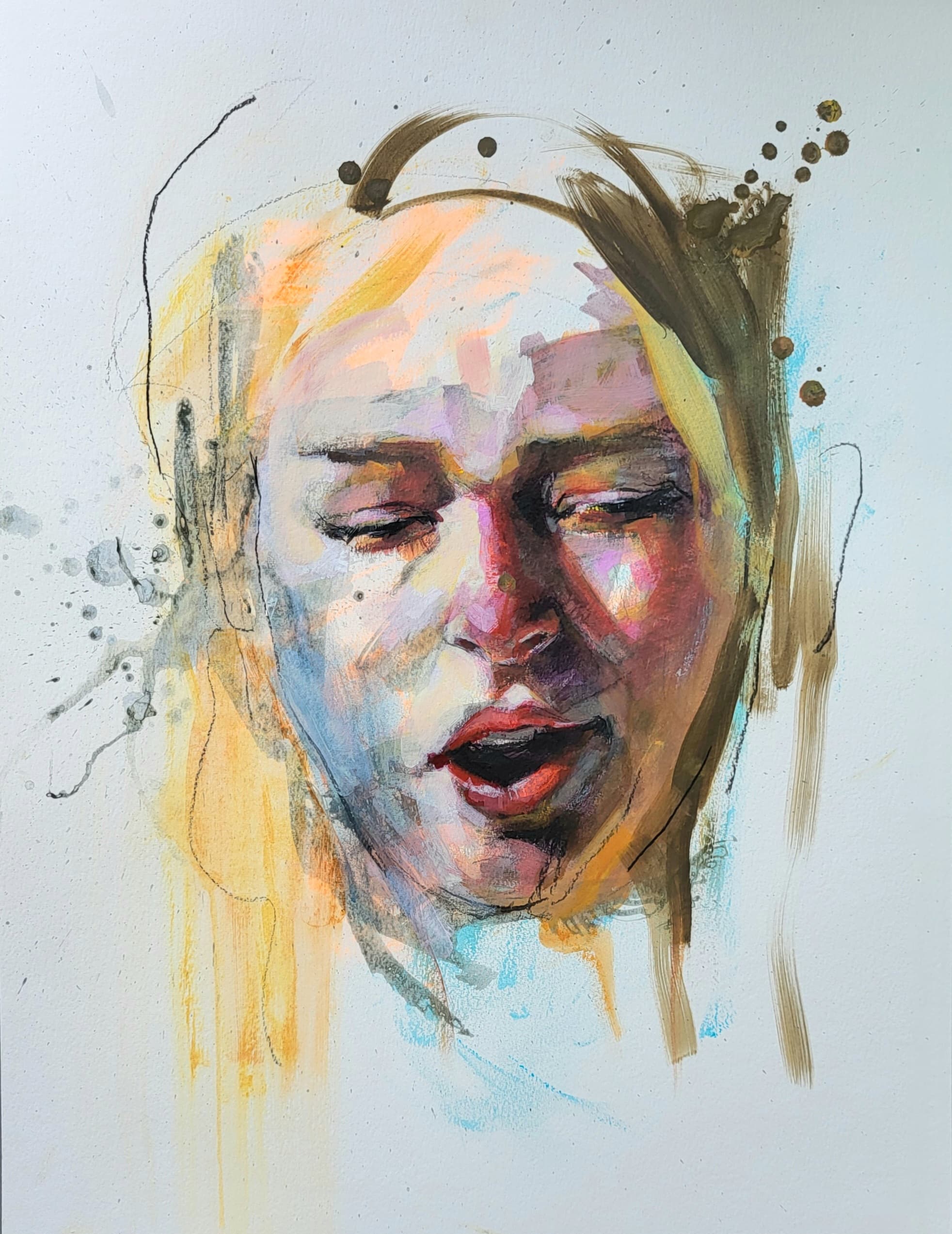 mixed media on paper, mounted on panel, in floating frame