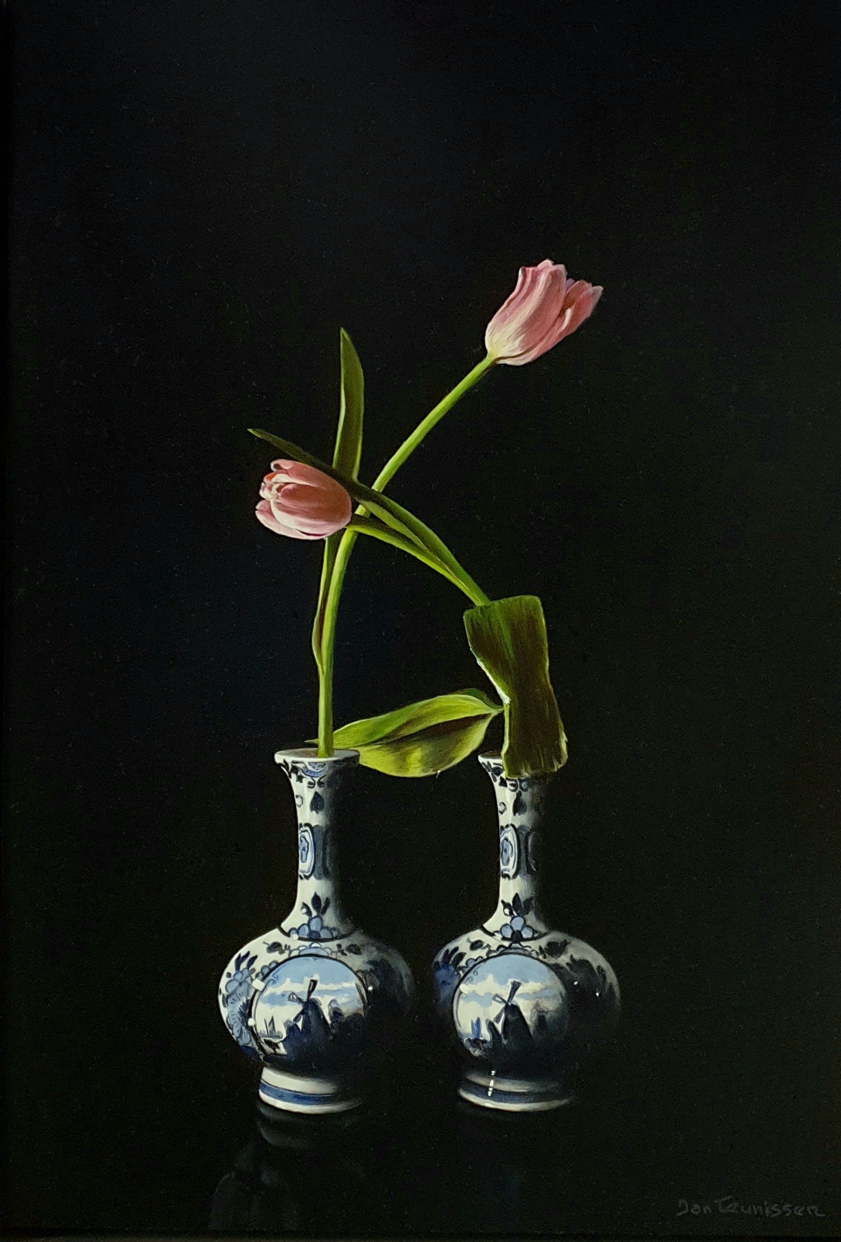 Tulpen-in-Delftsblauwe-vaasjes-50x35cm